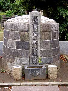 墓は、谷中霊園 甲9号10側。神式円墳墓。「津端家」墓域内。野宮家の明治以後の方が祀られているようだが、墓誌なく確認できない。野宮定茂の長女昭子が津端家に嫁いでいる。この縁で野宮家の墓を引き取ったものと思われる。
